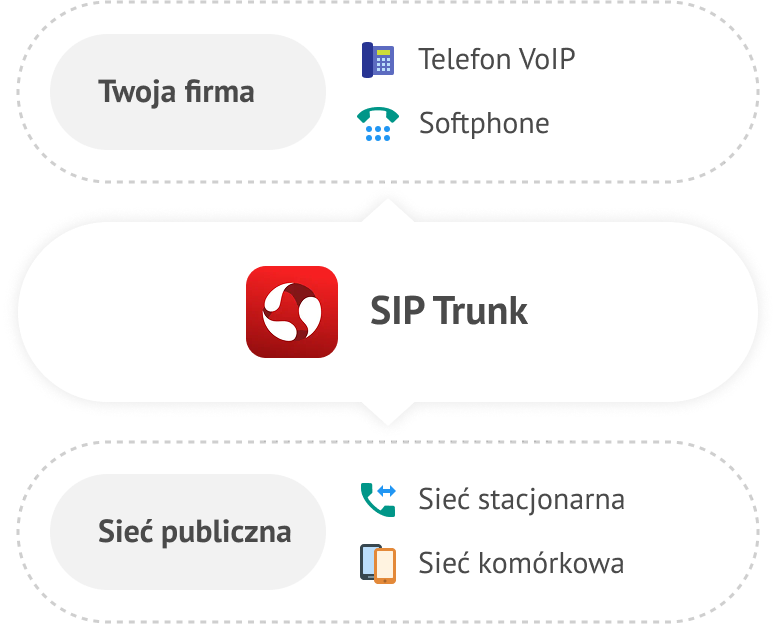 Przekierowuj połączenia przychodzące na dowolny adres SIP. Idealne dla PBX hostowanych na zewnętrznych serwerach lub agentów głosowych AI.